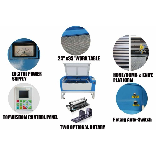 We offers a popular 24"x35" engraving and cutting area with 60W or 105W CO2 laser tube. Fastest in Class drive system includes Patent Driving Design. Cyclone Series Laser Engraving and Cutting Machine may be the better choice on laser machine market today. Get 1200mm/s more speed and 100W more CO2 power.